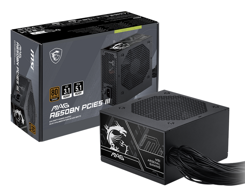 產品料號 MAG A650BN PCIE5 III 轉換效率 高達 85%(80 PLUS銅) 模組化 直出 風扇尺寸 120 mm風扇軸承 Hydrualic Bearing尺寸 (DxWxH)140mm x 150mm x 86mm / 5.51 x 5.9 x 3.38 inches功率因數校正 主動式 PFC 輸入電壓 100~240 V~ 瓦特數 650瓦