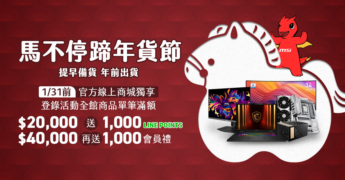 - 「滿額送1,000 LINE POINTS 回饋」以單筆有效訂單實付金額(不含運費)為準。若訂單取消、退貨或退款,微星有權取消或取消相應回饋資格。